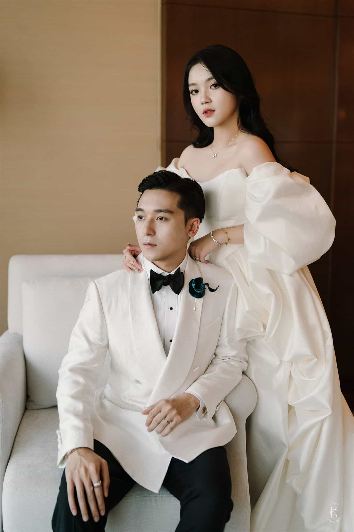 Thao’s bouquet was another star of the show. She didn’t want an ordinary bouquet; she wanted something that uniquely represented her. Thao opted for a striking blue bouquet featuring dyed tulips, calla lilies, and blue-sprayed anthuriums adorned with sparkling crystals. The bouquet was a bold, fashion-forward statement—effortlessly unique, just like Thao.