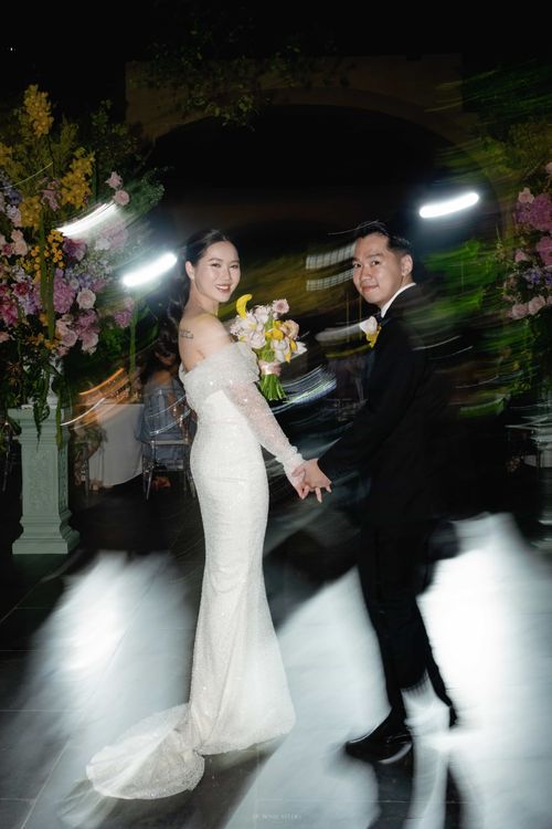 All of the details including the shape of the ceremony floral arch to the invitation set to the seating chart, to the glass window served as dinner background, to the wedding cake, to table settings. Everything harmonised beautifully together for Huong & Khong Anh's celebration.